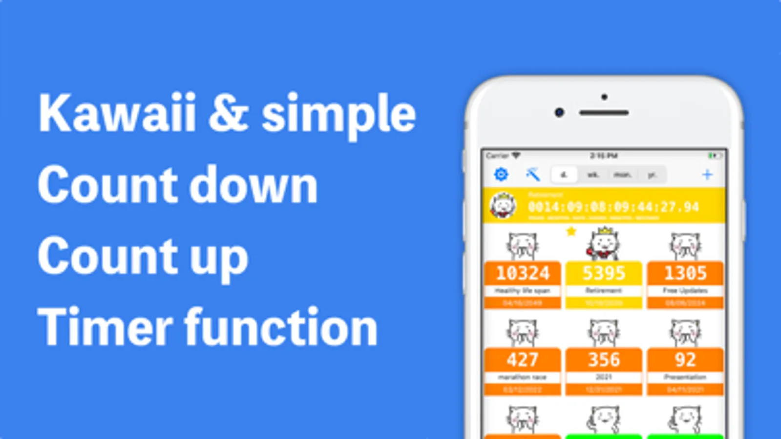 Count Suruo is a kawaii app that can be confirmed easily by listing the "many days left until the scheduled date" and "whether has passed that day many days from".