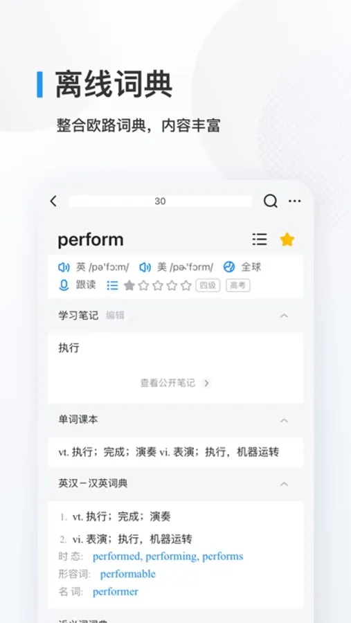 欧路背单词是专为英语学习者设计的背单词软件。海量原声例句搭配艾宾浩斯记忆法,助你在了解单词真实语境的同时,科学高效的背单词。