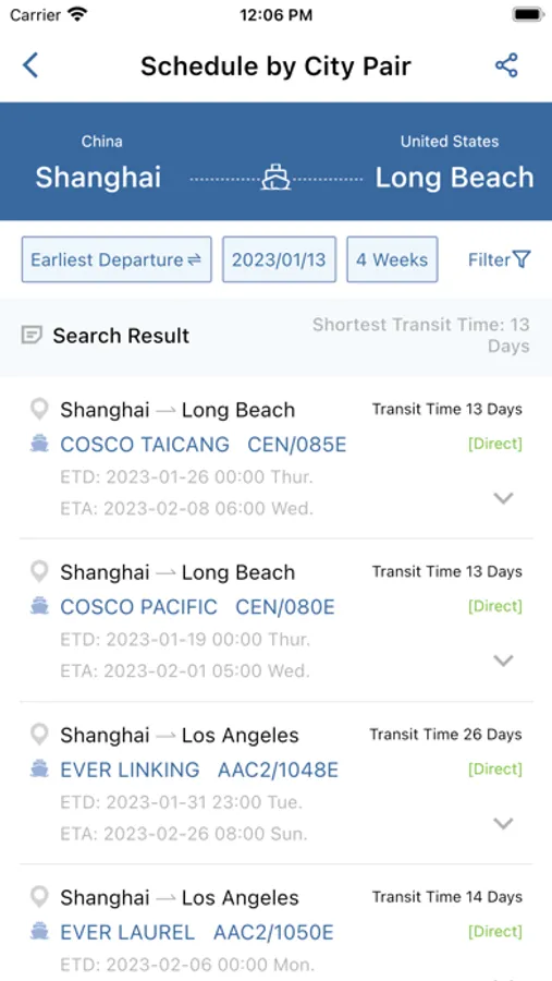 》Check vessel schedule for point-to-point, port calls and vessels information