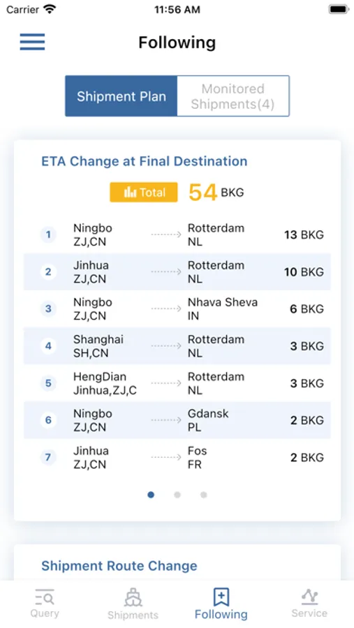 》Timely obtain the change information of shipment transportation ,such as shipment route change and ETA FND change