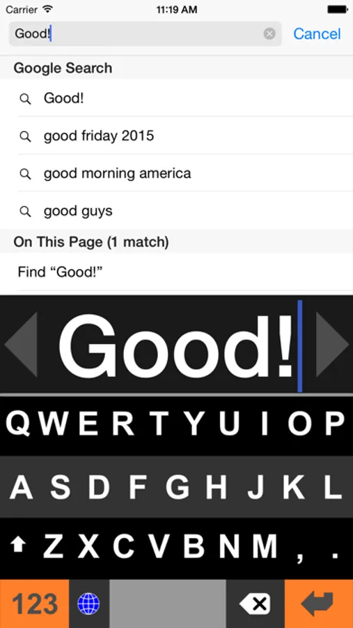 With large text preview and good contrast, Viskey lets you leave your reading glasses in your pocket. You can pinch zoom the preview.
