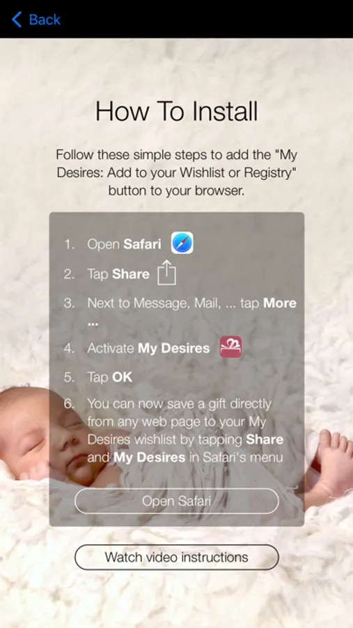 When you find the web page of a product you would like to add to your wish list, simply tap the "Share" button and our app will take care of the rest !