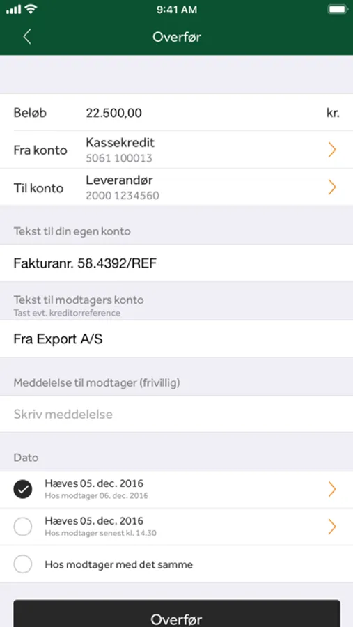 • Oprette overførsler i danske kroner