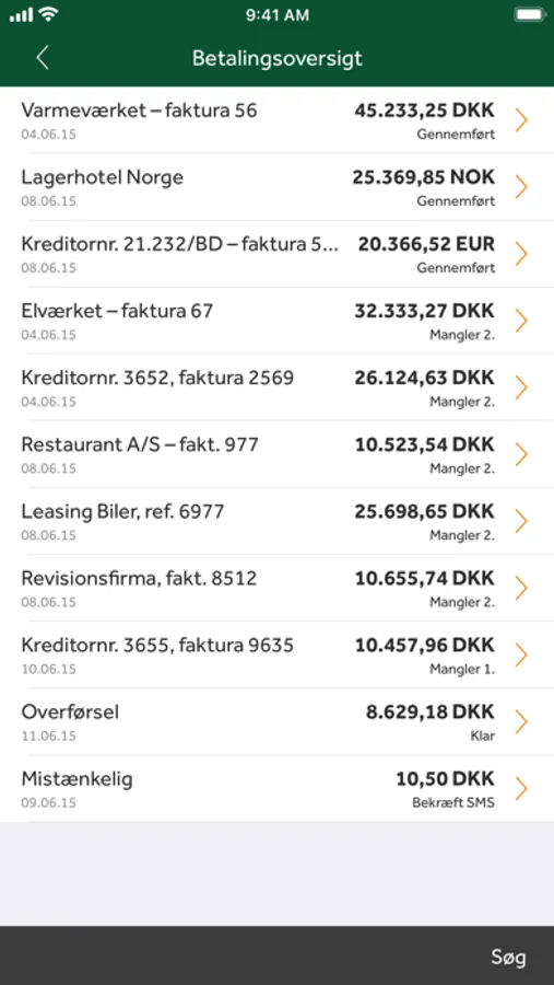 • Søg posteringer og betalinger frem