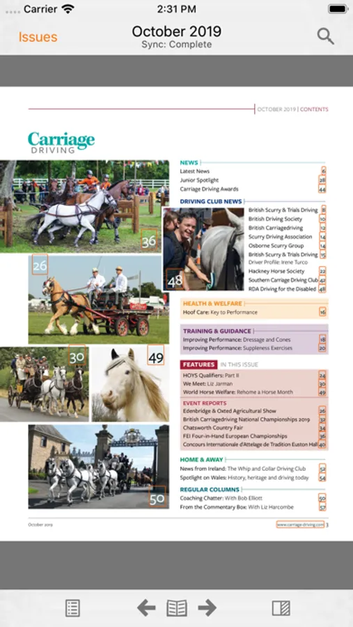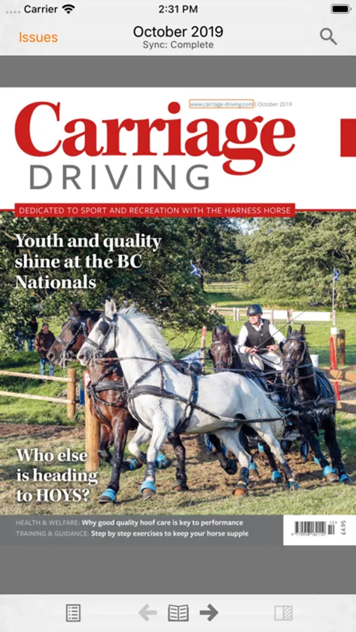Carriage Driving is the only monthly magazine dedicated entirely to sport and recreation with the harness horse. It is a must-read publication for all carriage driving enthusiasts, covering all aspects of recreational and competitive driving, including private driving, light trade, coaching, show Hackneys, scurry driving and horse driving trials.