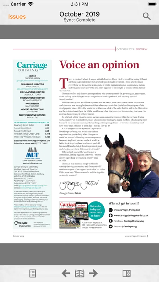 • Sync back issues to your device for offline reading (requires wi-fi).