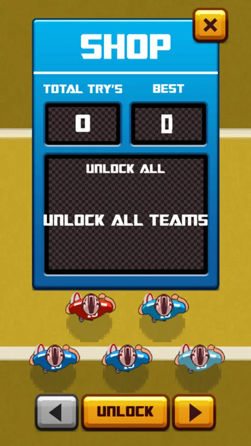 Unlock and Play for your favorite team. Score most tries and beat try scoring records to top the Global Leaderboard.