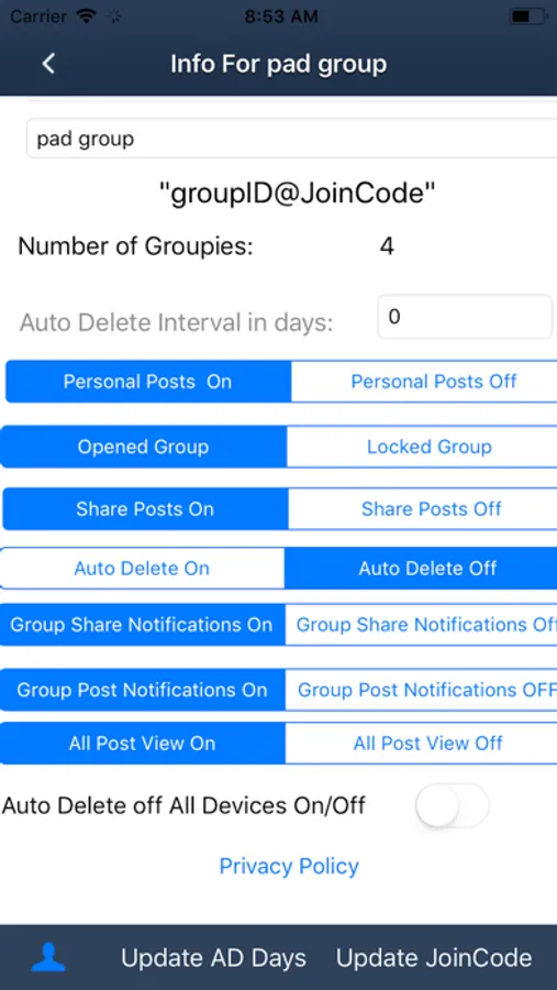 If a group’s owner decides to delete a group, then ALL posts are automatically deleted from each Groupie’s device. Group owners can also “prune” their group by removing individual Groupies, and even update their join code to prevent banished Groupies from trying to sneak their way back in!