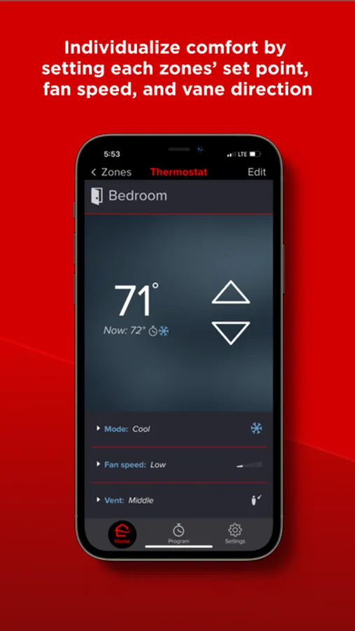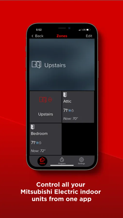 • Monitor and change temperature, mode, fan speed, and vane direction of an indoor unit, a group of units, or the whole home.