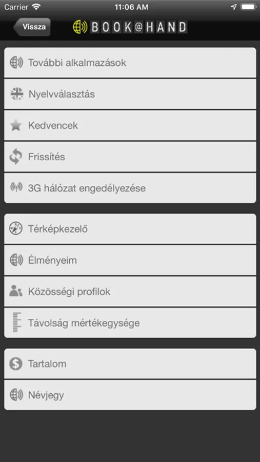 ENGLISH: BOOK@HAND provides information in English, German and Hungarian. You can choose the default language when installing BOOK@HAND to your mobile.