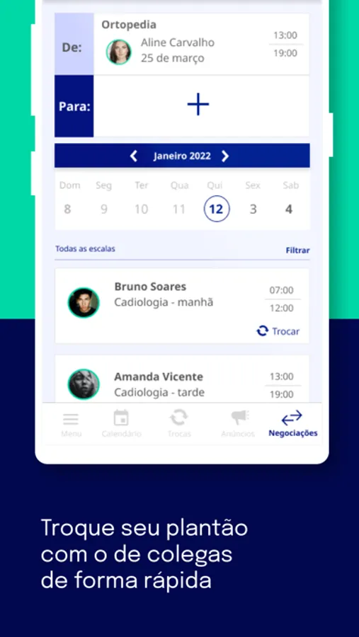 O Escala é a solução completa para gerenciamento da escala médica de hospitais e clínicas e resolve de forma simples e eficiente os problemas comuns da gestão de plantões. Com o Escala, o plantonista consulta, realiza trocas e recebe atualizações de seus plantões diretamente pelo app, podendo sincronizar com sua agenda pessoal. Além disso, possibilita que gestores acessem relatórios, dashboard executivo e visão da escala do dia de forma rápida e prática.