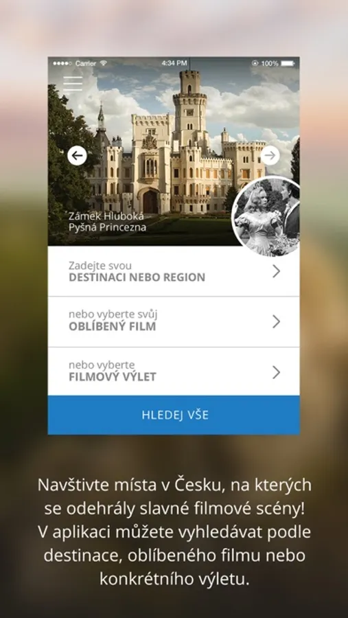 Aplikace Czech Film Trips je váš průvodce na toulkách filmovými lokacemi po Česku. Vydejte se po stopách svých oblíbených filmových hrdinů, hrdinek a světových filmových příběhů do míst, která znáte ze „stříbrného plátna“ a televizních obrazovek. To pravé genius loci je možné zažít přímo na vlastní kůži, tak hurá na výlet!