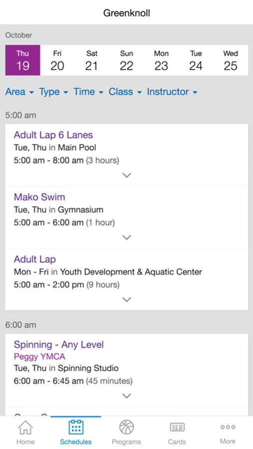 • Easily view schedules for each day and filter for the types of classes that you like.