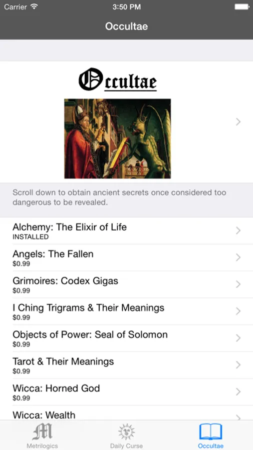 As you consult iDemon each day, BE SURE to also check out the app's "Occultae" tab. Each video mod provides you with knowledge on a variety of hidden topics and forbidden secrets, including: