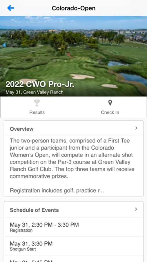 • Check in to Colorado Open events and keep the scorecard on your phone.