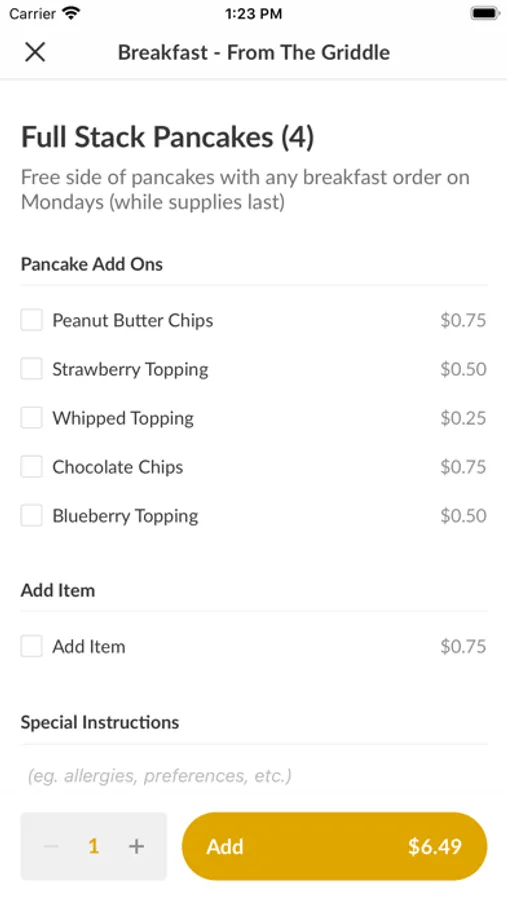 With the Goldies Restaurant mobile app, ordering food has never been easier. Whether you're looking for a quick snack or a full meal, we've got you covered. Just browse our easy-to-use menu, customize it how you'd like, place your order using our secure payment system, and sit back! A push notification will alert you when your order will be ready.