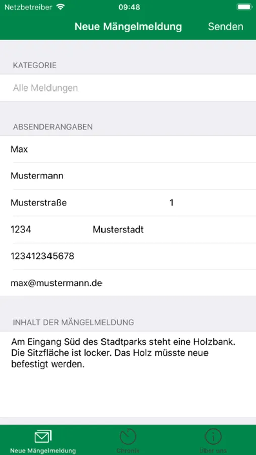 - Meldung absenden → Fertig!