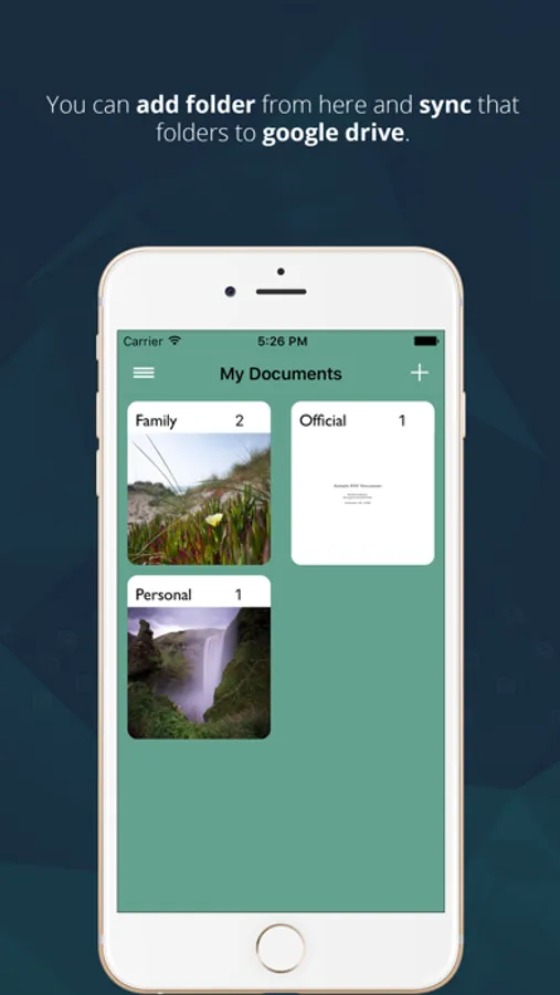 The purpose of this app is to let you organize your documents in the way you want to. This app lets you create folders/tags and put your documents to it. You can synchronize your folders with google drive and download photos into your device and export photos to iCloud drive.