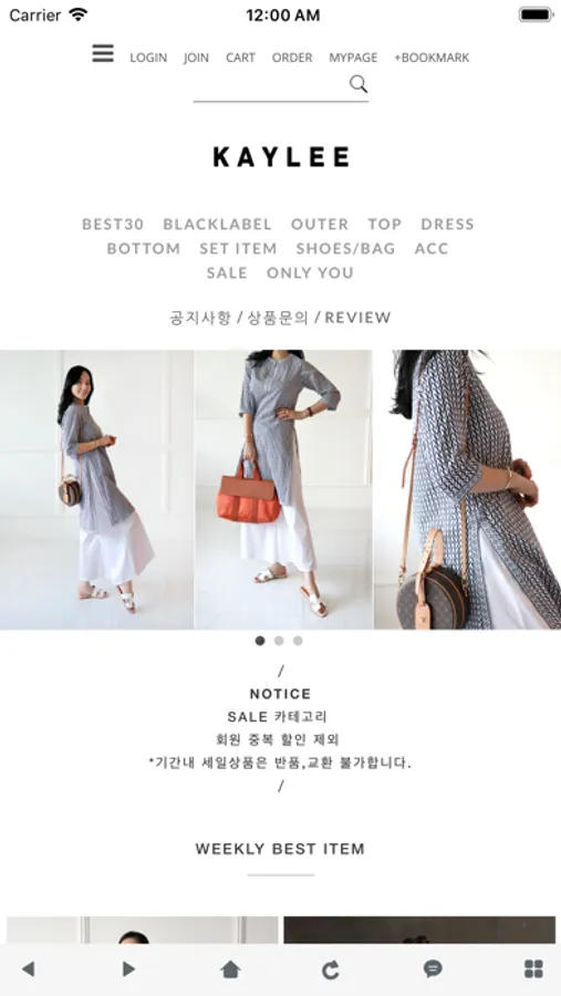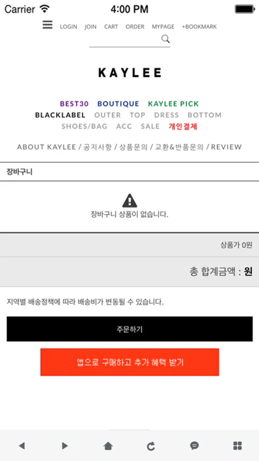 본 APP은 웹쇼핑몰(www.kayleeshop.co.kr)과 연동되어 있어