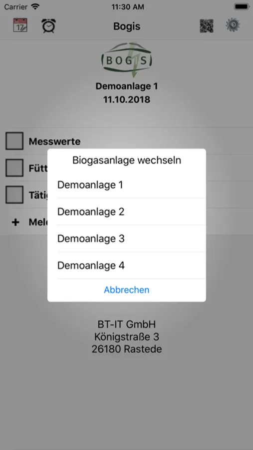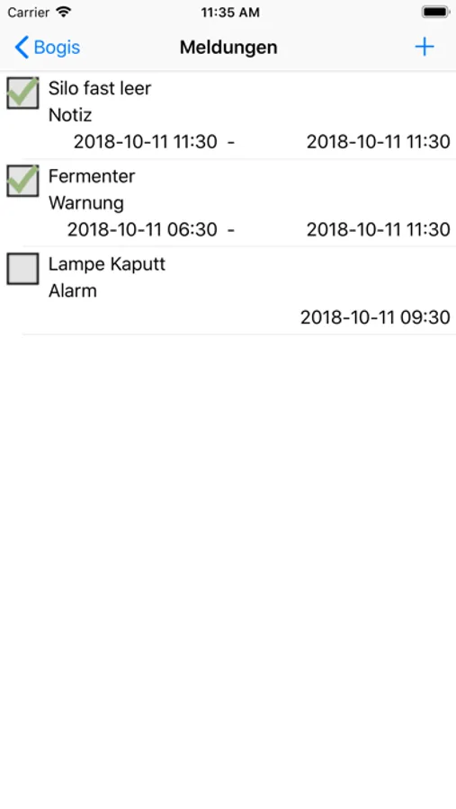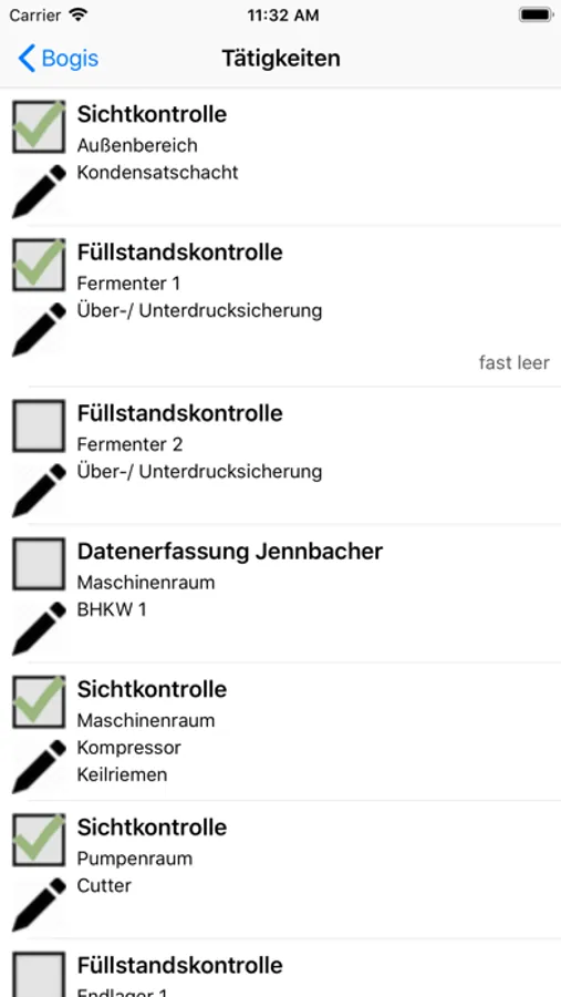 Täglich werden die zuständigen Mitarbeiter mit dem individuellen Wartungs- und Kontrollplan über die Anlage geführt. Außerdem können die App-User jetzt auch Meldungen in der App hinzufügen und diese zu einem beliebigen Zeitpunkt (wir empfehlen mindestens einmal täglich) in unserem Bogis System übertragen.