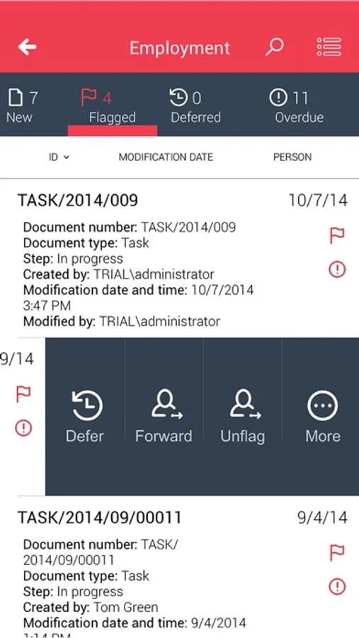 Browsing through tasks and documents assigned to the user (requests, invoices, correspondence, etc.),