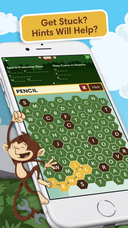 Monkey Wrench is a fun word find quiz game with a twist that will challenge your brain – you have to use the clues to figure out what the hidden words are! If you like crossword puzzles and wordsearch games, you’ll love Monkey Wrench!