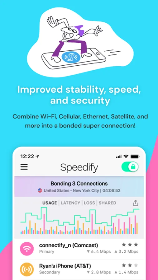 Turbocharge your internet with Speedify, the only app that combines multiple internet sources into one bonded super-connection for reliable, uninterrupted online experiences.