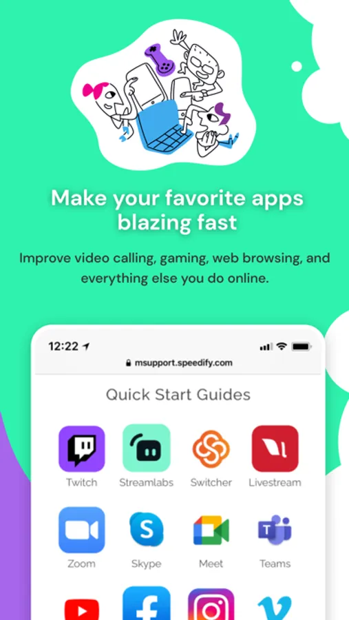 Tired of your audio and video buffering the second you step outside of Wi-Fi range? Speedify bonds your cellular and Wi-Fi connections together, seamlessly shifting your web traffic between them as necessary without missing a beat. Secure, easy to use, and compatible with all your favorite streaming services and apps, Speedify is perfect for: