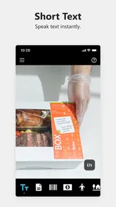 • Read - Hear text as soon as it appears in front of the camera. Document alignment provides audio cues to capture a printed page and recognize the text along with its original formatting. Ask Seeing AI about the contents to easily find the information you need.