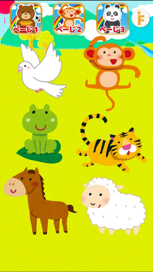 動物のイラストをタッチすると「パオーン」とか「ガーガー」とリアルに鳴き、可愛く動きます。