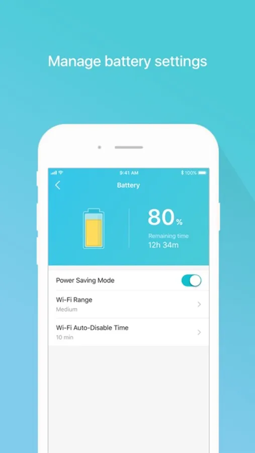 -Monitor your Mobile Wi-Fi's battery life in real-time and switch it to power saving mode.