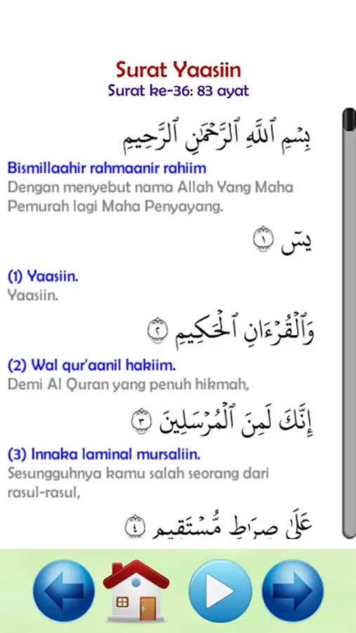 Surah Yaseen (yaasiin/yasin) and Tahlil complete with translation. Surah Yaseen and Tahlil supports 3 languages and translations: English, Indonesian, and Malay.