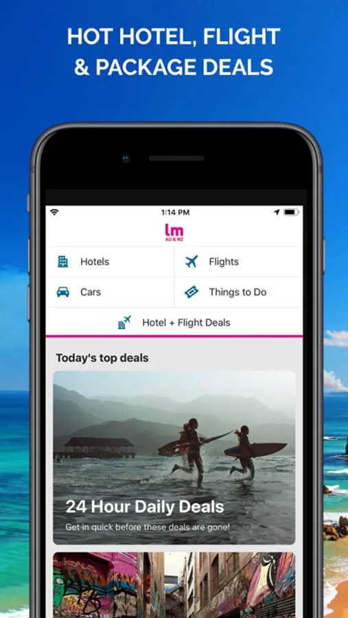 The lastminute.com.au app uses information for analytics, personalisation and advertising. By using our app, you agree to our privacy and cookies policies.