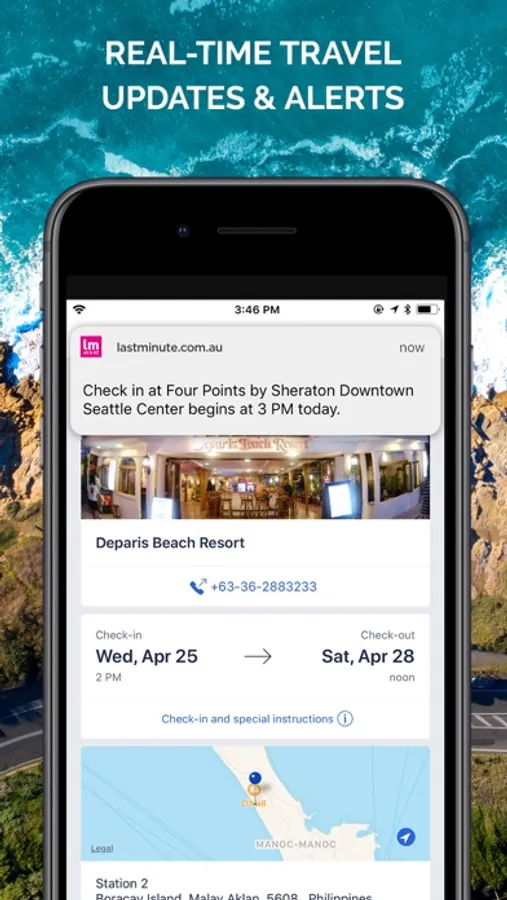 • Your in the know travel app will alert you to flight delays, hotel check out times and more