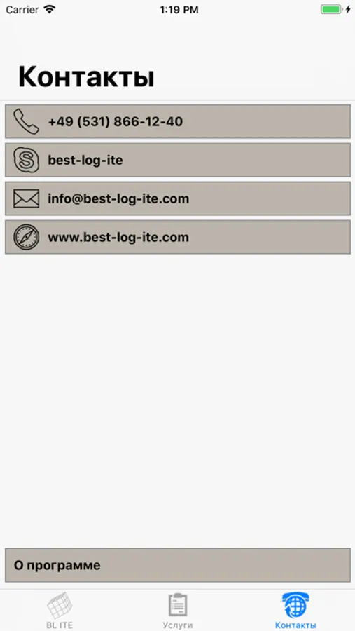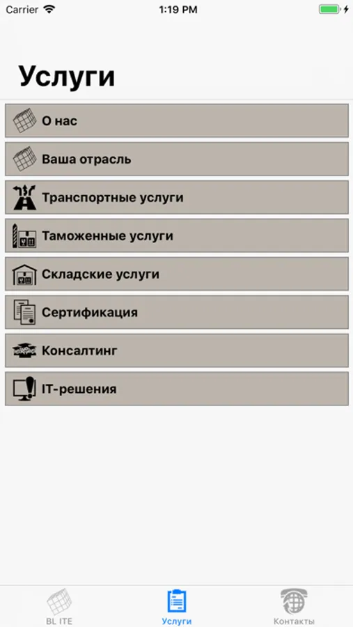 - Просматривать каталог предоставляемых услуг, а также получить описание каждой из них