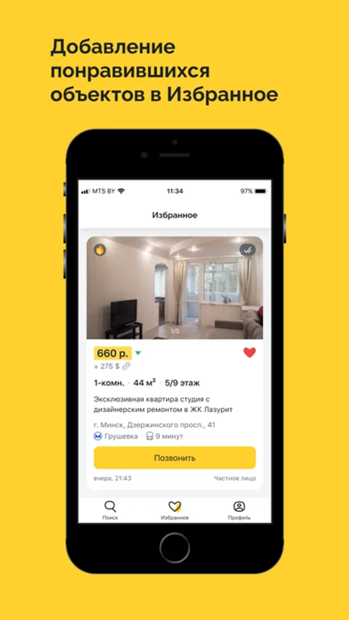 • Просматривайте карточку объявления перед арендой или покупкой недвижимости. Добавляйте понравившиеся объекты в Избранное, следите за ценой объекта, просматривайте историю цены объекта. Получайте по ним push-уведомления.
