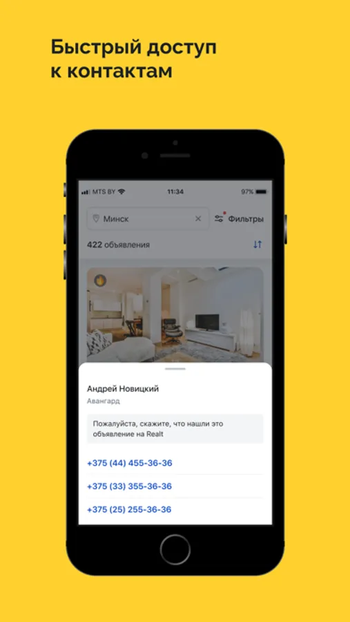 • Отправляйте заявку на обратный звонок агентству/агенту с карты, с листинга, с карточки объекта, из галереи, в случае если вы не смогли дозвониться.