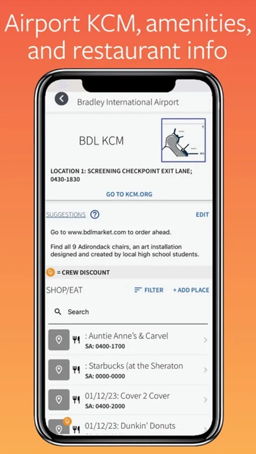 - Airport information, with airport maps, KCM, crew discounts, and photos.