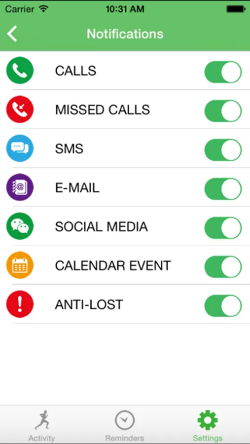 Support to show the incoming call No, reminder you if you have missed calls, messages, emails, social dynamic and also support to mobile phone anti-lost.