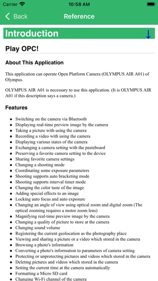 OLYMPUS AIR A01 is necessary to use this application. (It is OLYMPUS AIR A01 if this description says a camera.)