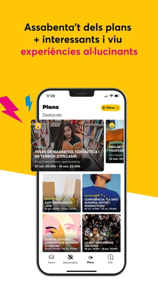 Aquesta és la súper novetat de l’app. Quan el teu Carnet Jove estigui a punt de caducar-se, t’avisarem un mes abans i el mateix dia que es caduqui. L’app t’enviarà una notificació.