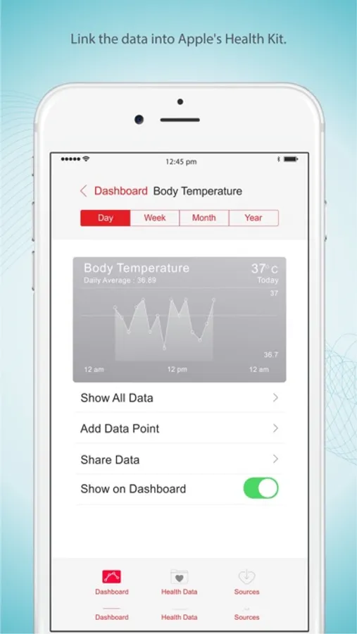 FW application will update the temperature reading to Apple Health Kit. The user can read the temperature as part of vitals from Apple Health Kit also.