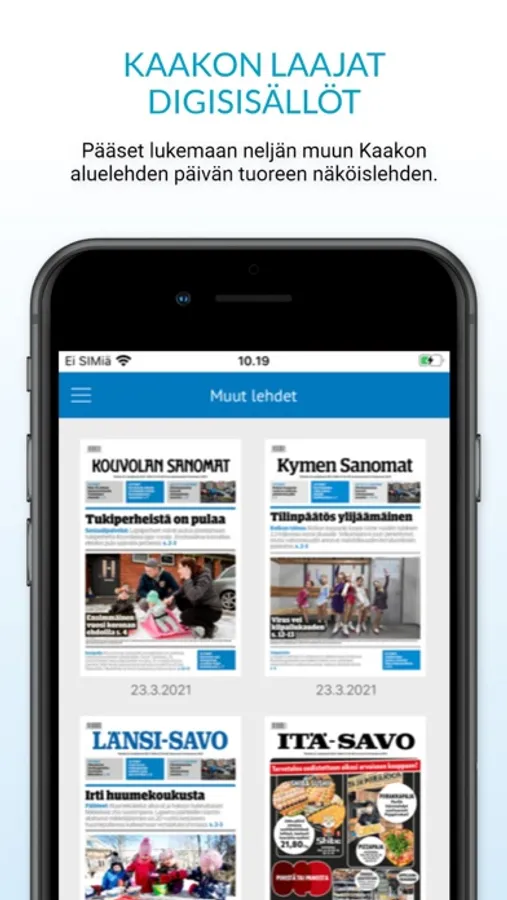 Sovellus sisältää uusimman julkaistun näköislehden sekä lehtiarkiston ja liitteet. Käytössäsi on lisäksi Kaakon laajat digisisällöt eli voit lukea myös Kaakon neljän muun aluelehden tuoreimmat näköislehdet päivän lehti -sovelluksellasi. Voit lukea sovellukseen lataamiasi lehtiä myös ilman verkkoyhteyttä missä vain ja milloin haluat.