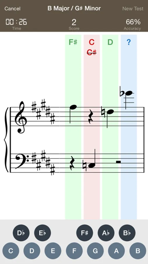 B Flat remembers misread notes and will display them more often. This increases the learning effect.