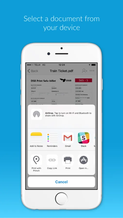 - Open the document you wish to print and tap “open in” Princh.