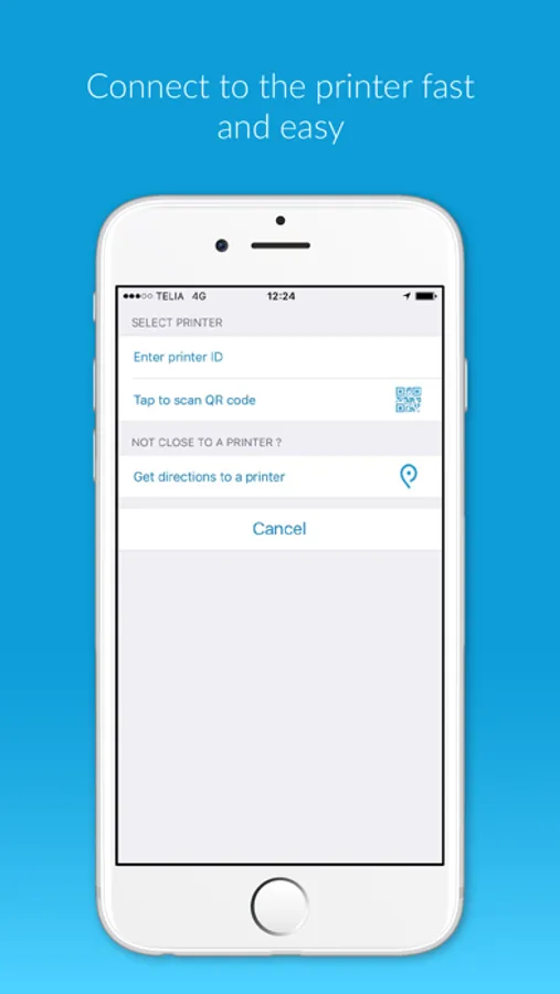 - Select the printer either by typing in the printer ID or by scanning the QR code by the printer.