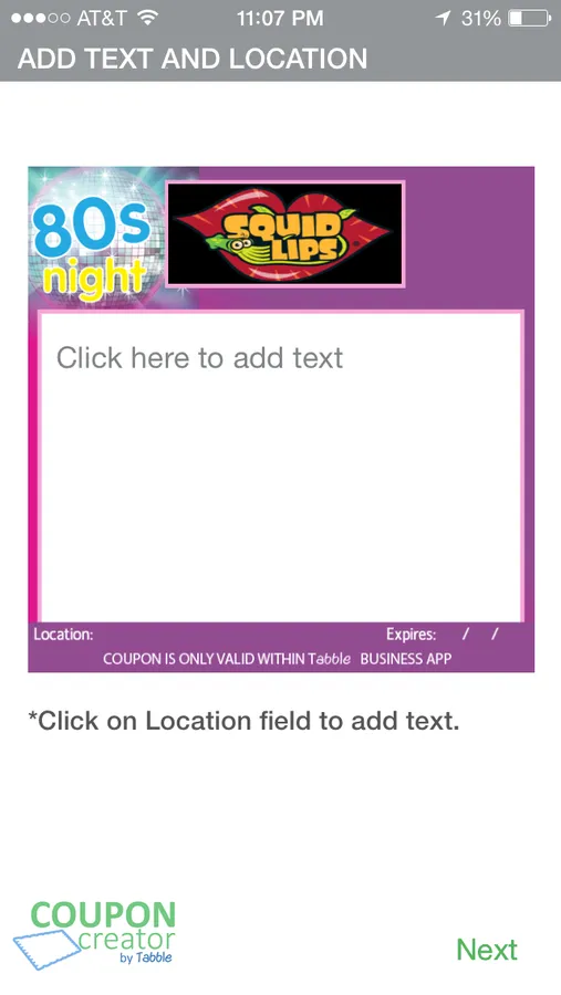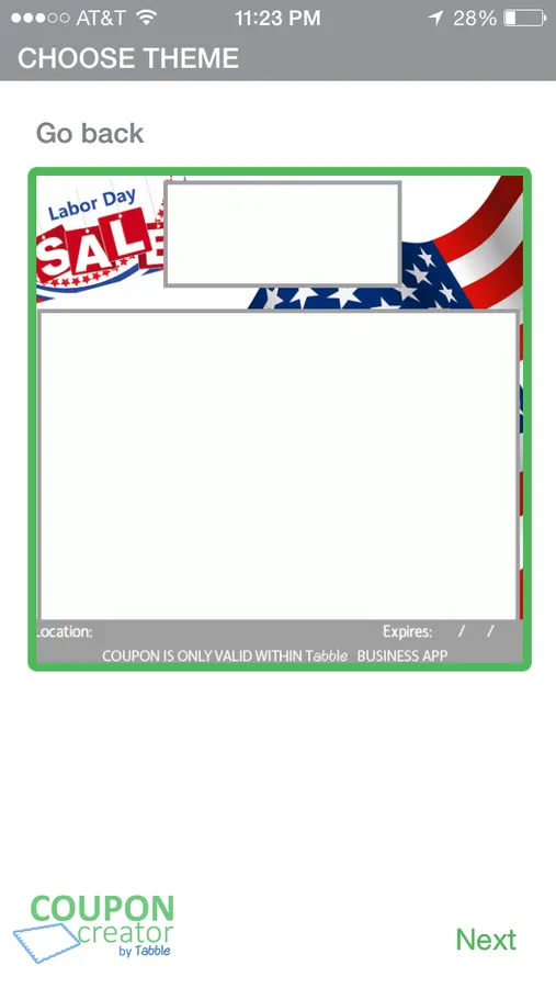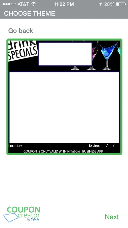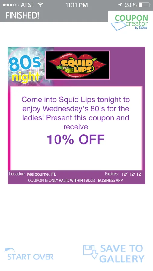 A super fast and user friendly way to create coupons within seconds for Tabble Business App. No sign up needed! Just download. Press go, and follow the steps to create a simple coupon to your liking. Very useful within the Tabble Business bubbles. This allows business owners to create a coupon instantly and alert all consumers within their bubble. It a great way to drive traffic to your location and also great for consumers to get discounts. Between the Coupon Creator and Tabble Business Bubble you can communicate with your clientele efficiently and fast!
