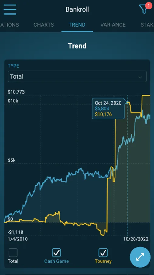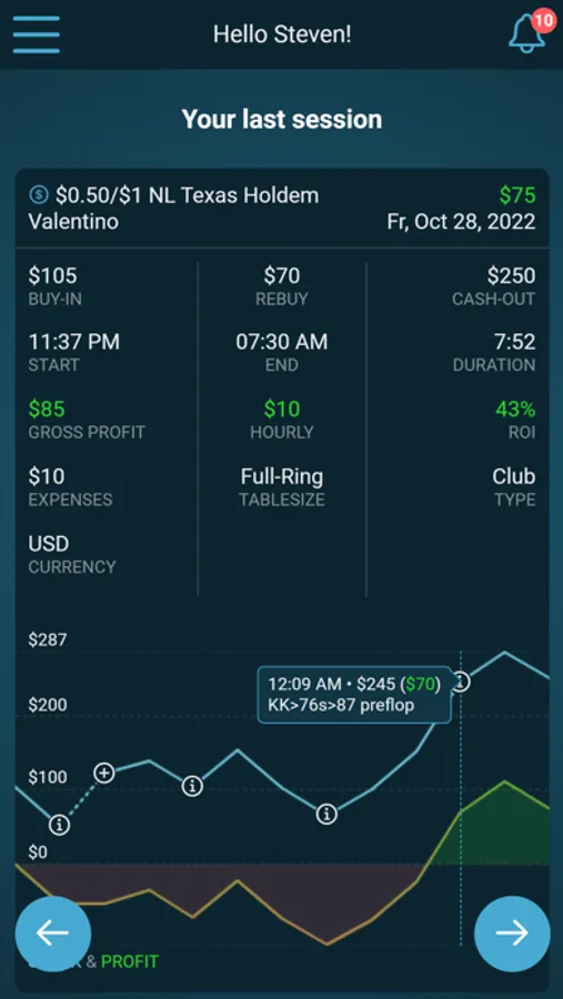 • Track your live sessions and visualize your chip graph and many more statistics.