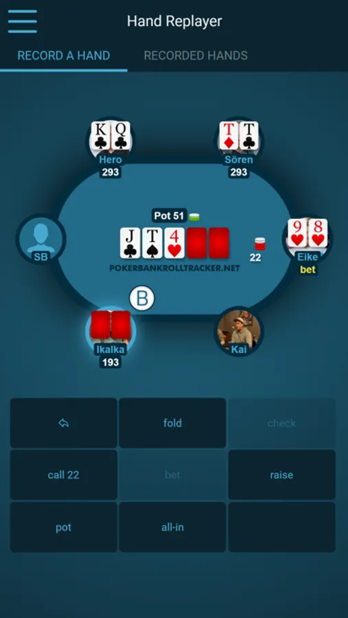 • Track hands with the hand replayer and share them with friends or in poker forums.