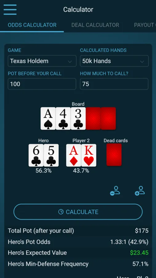 • Calculate Holdem & Omaha odds with the odds calculator.